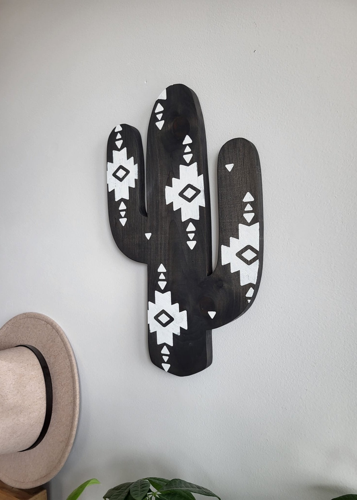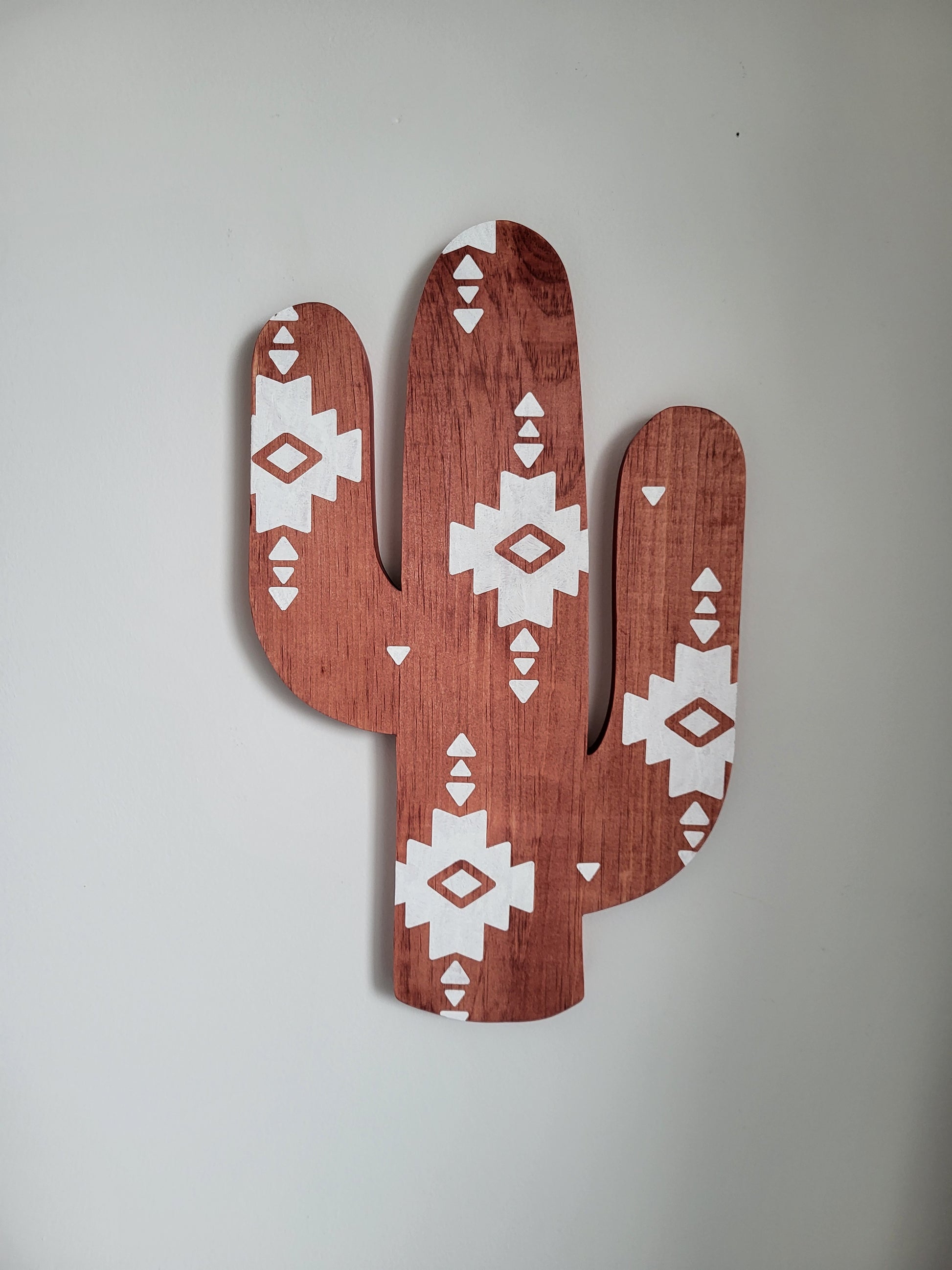 Enhance your space with a hint of Southwestern charm and bohemian style using our Aztec Wood Cactus Cutout. Made from high-quality Knotty Pine wood, this intricately detailed piece features a painted Aztec design, blending modern aesthetics with rustic vibes. Perfect for adding a cozy, desert-inspired ambiance to any room..