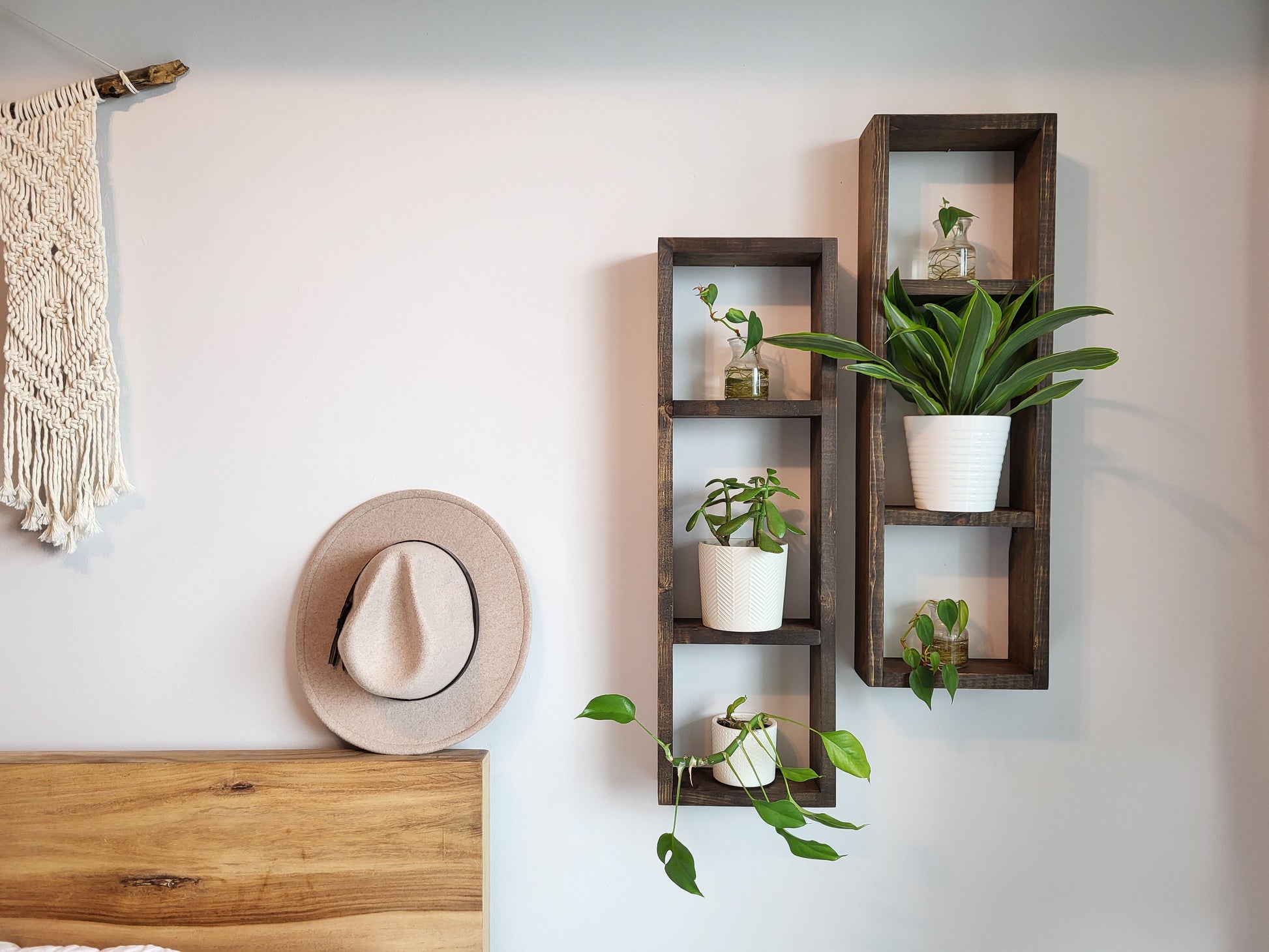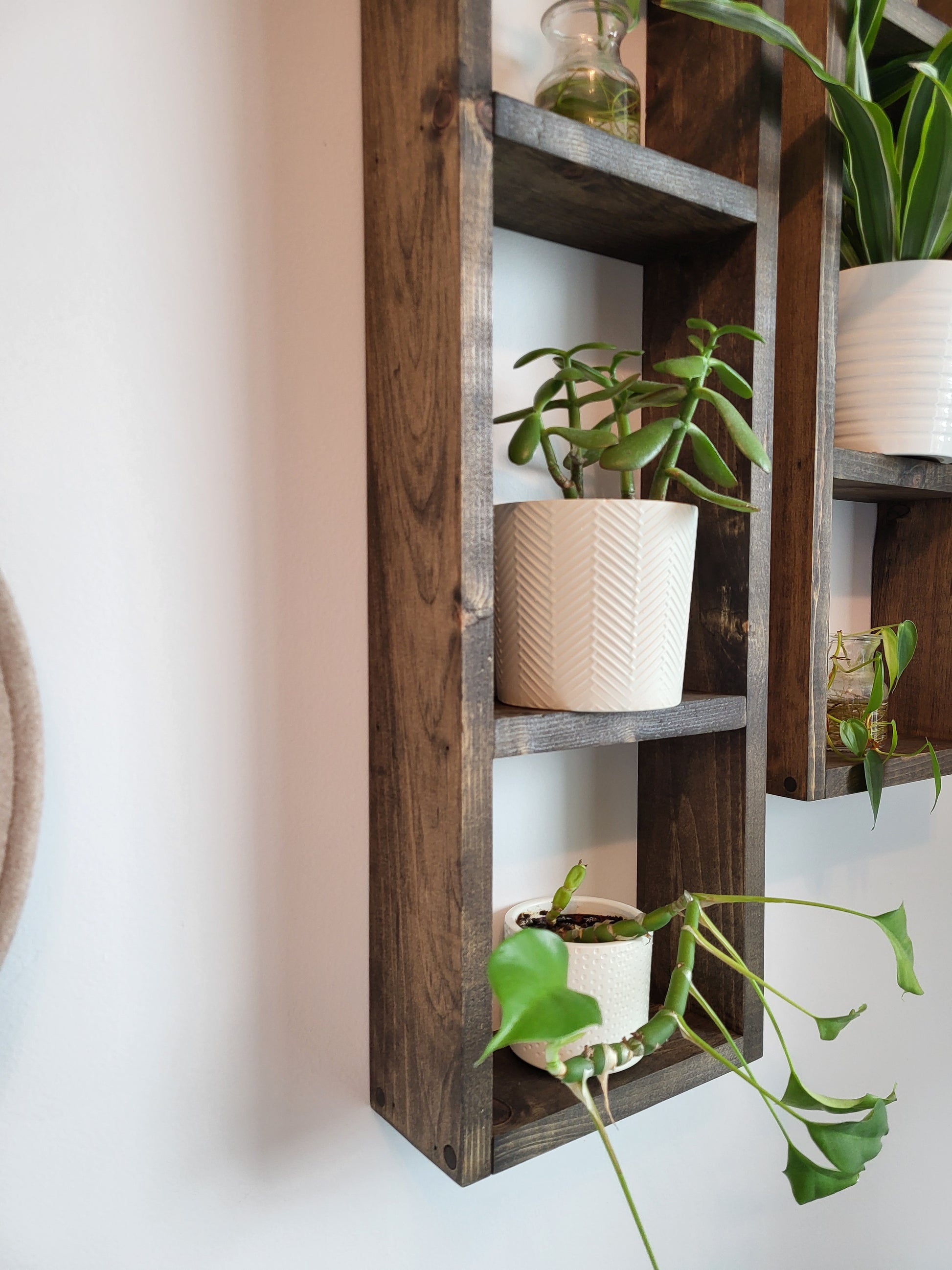 Upgrade your plant game with our Set of 2 Long Wood Boxes. Each set includes 2 Boxes featuring 2 inner shelves each. Perfect for medium plants, small succulents, or trinkets. Transform any wall into a stunning and practical display in your living room, office, or bedroom.