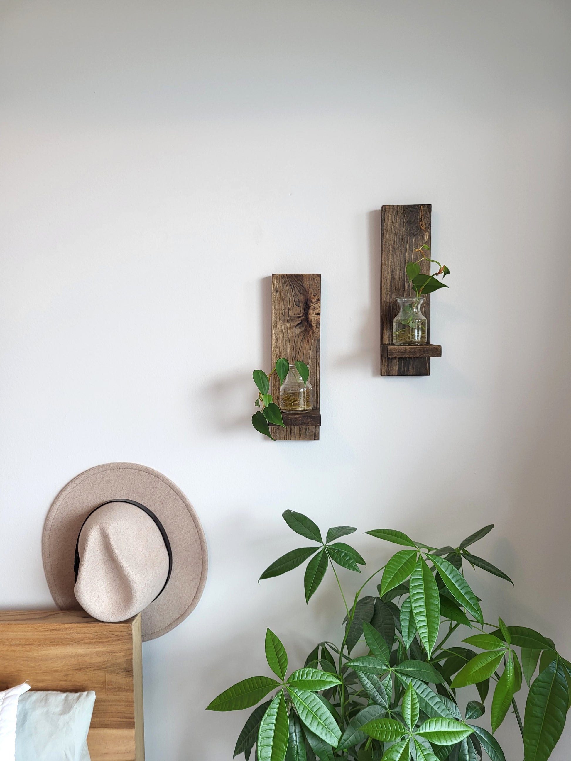 Elevate your home decor with our Set of 2 Long Wood Plant Shelves - perfect for displaying small plants, succulents, and figurines in your living space. Bring some bohemian and earthy vibes into your home with this unique and charming item.